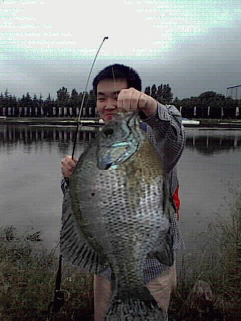 釣仲間の佐古君がイシ鯛のようなブルーギルを GET!!